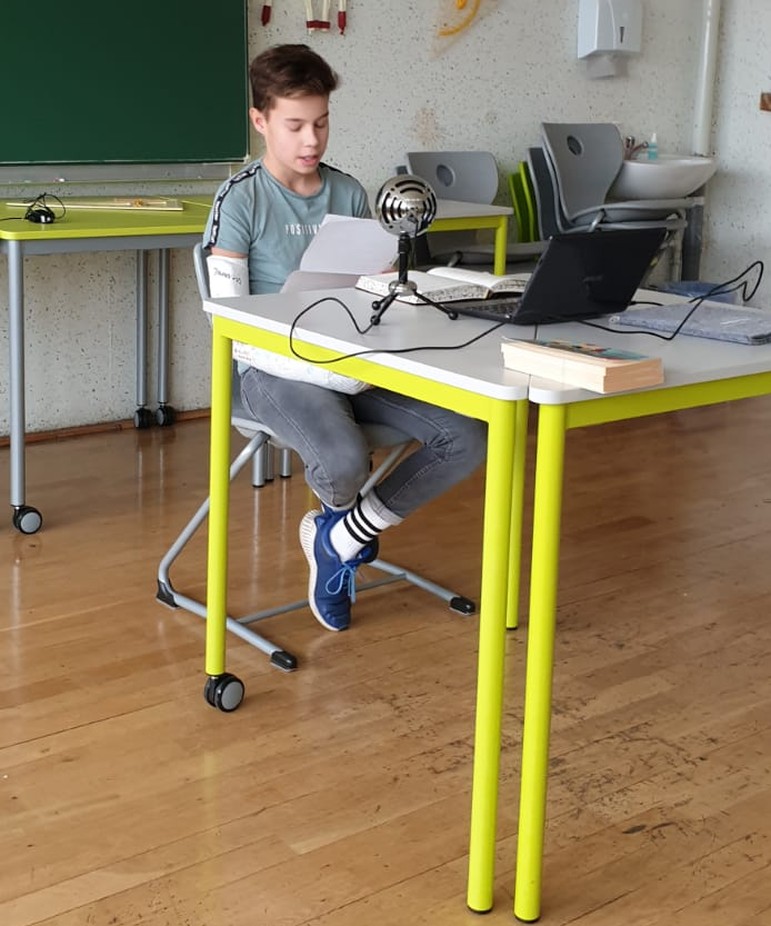 Beim diesjährigen Lesewettbewerb stellten am Donnerstag, dem 03.12., die drei besten Leserinnen und Leser der Klassenstufe 6 Vivien Holfeld (6a), Jonas Leupold (6b) und Tarik Albrecht (6s) vor einem coronabedingt sehr kleinen Publikum ihr Talent unter Beweis. Am Ende konnte Tarik Albrecht aus der Klasse 6s die Jury mit seiner Leistung am meisten überzeugen. Wir gratulieren dem Sieger und allen Teilnehmern ganz herzlich.